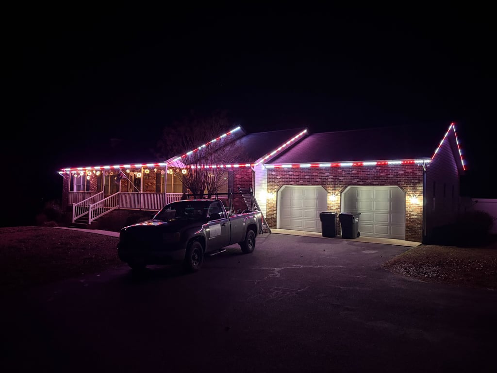 Permanent LED strip lighting creates a smooth, seamless line of light along rooflines, soffits, under eaves, railings, or landscape features. This option is ideal if you want a modern, high-end look with even illumination.