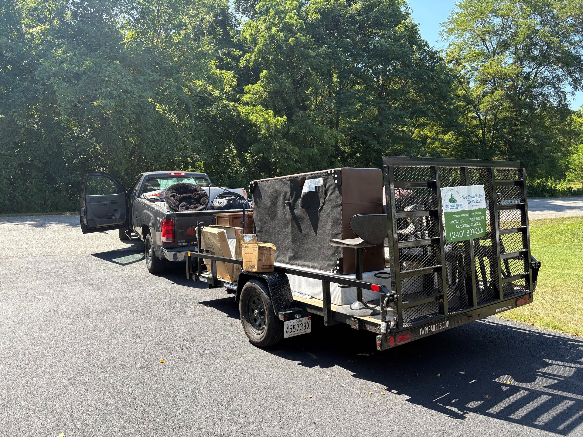 At FFS Lawn Care, we don’t just handle lawns — we also provide fast, affordable, and reliable junk removal and estate cleanout services across Southern Maryland, including Waldorf, La Plata, Hughesville, Leonardtown, and Prince Frederick. Whether you’re clearing out a garage, cleaning up a rental property, or managing a full estate cleanout, our veteran & family-owned team takes care of the heavy lifting so you don’t have to.